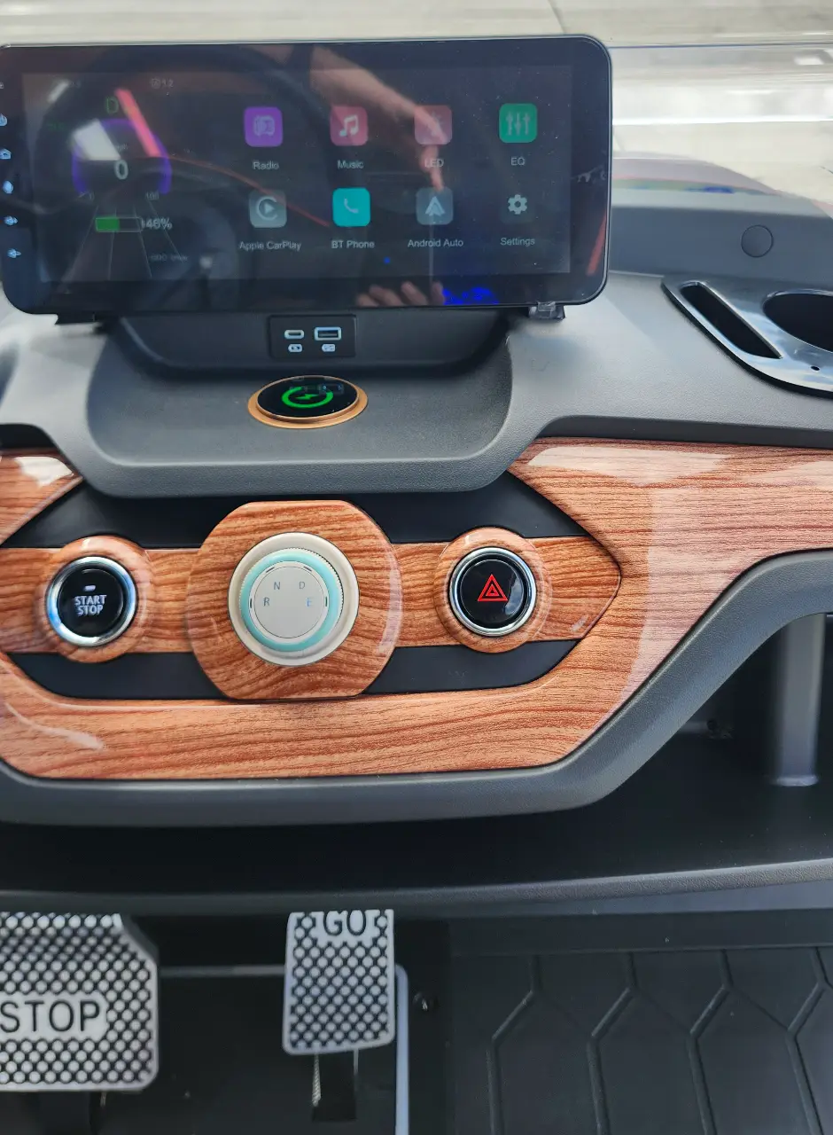 - Dashboard: 12.3-inch TFT LCD touchscreen with battery level, current, voltage, speed, mileage, MP3/MP4, reverse cam, light controls, radio, CarPlay & Android Auto.