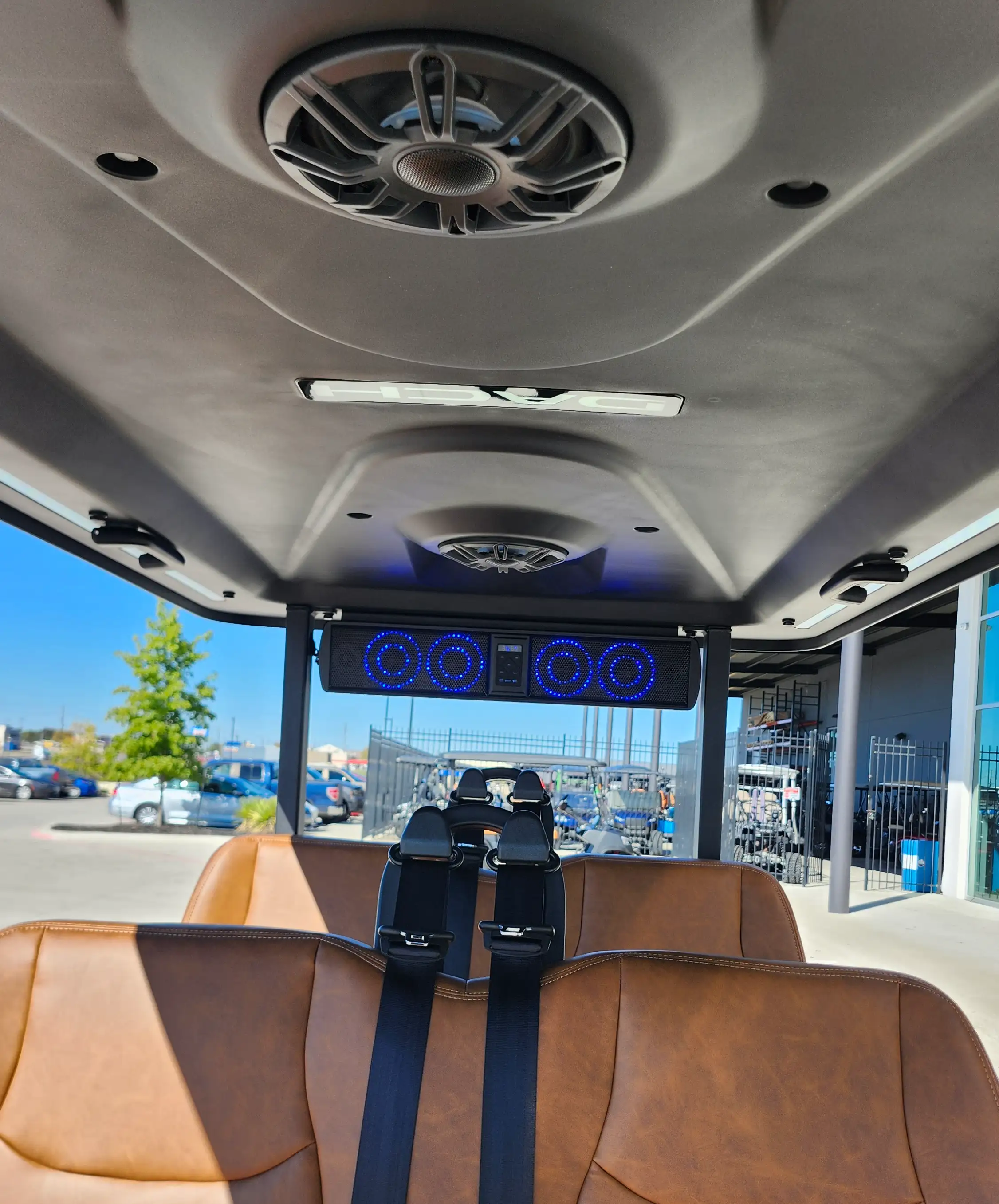 - Sound System: Built-in soundbar plus roof-mounted 6.5” speakers.