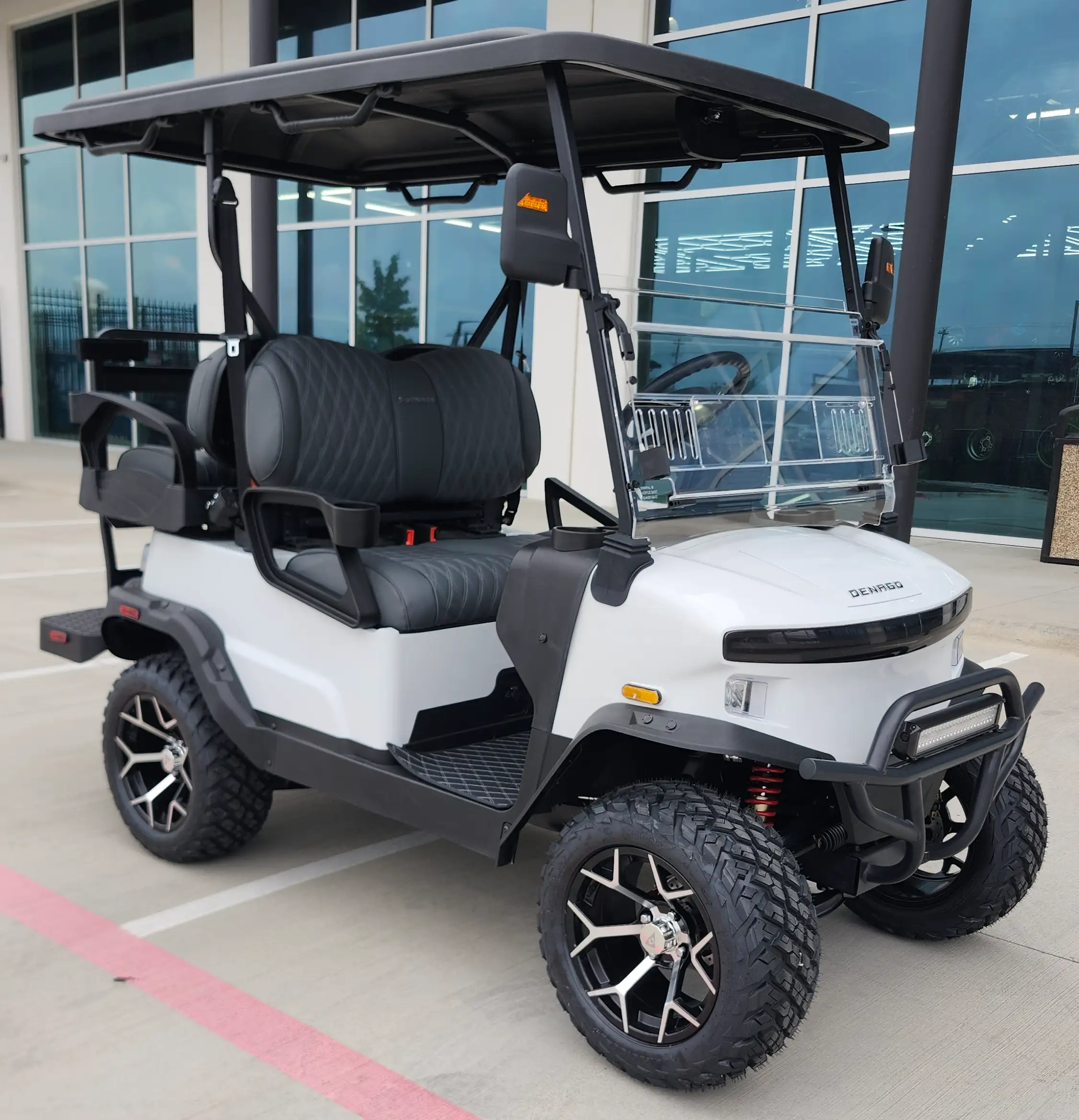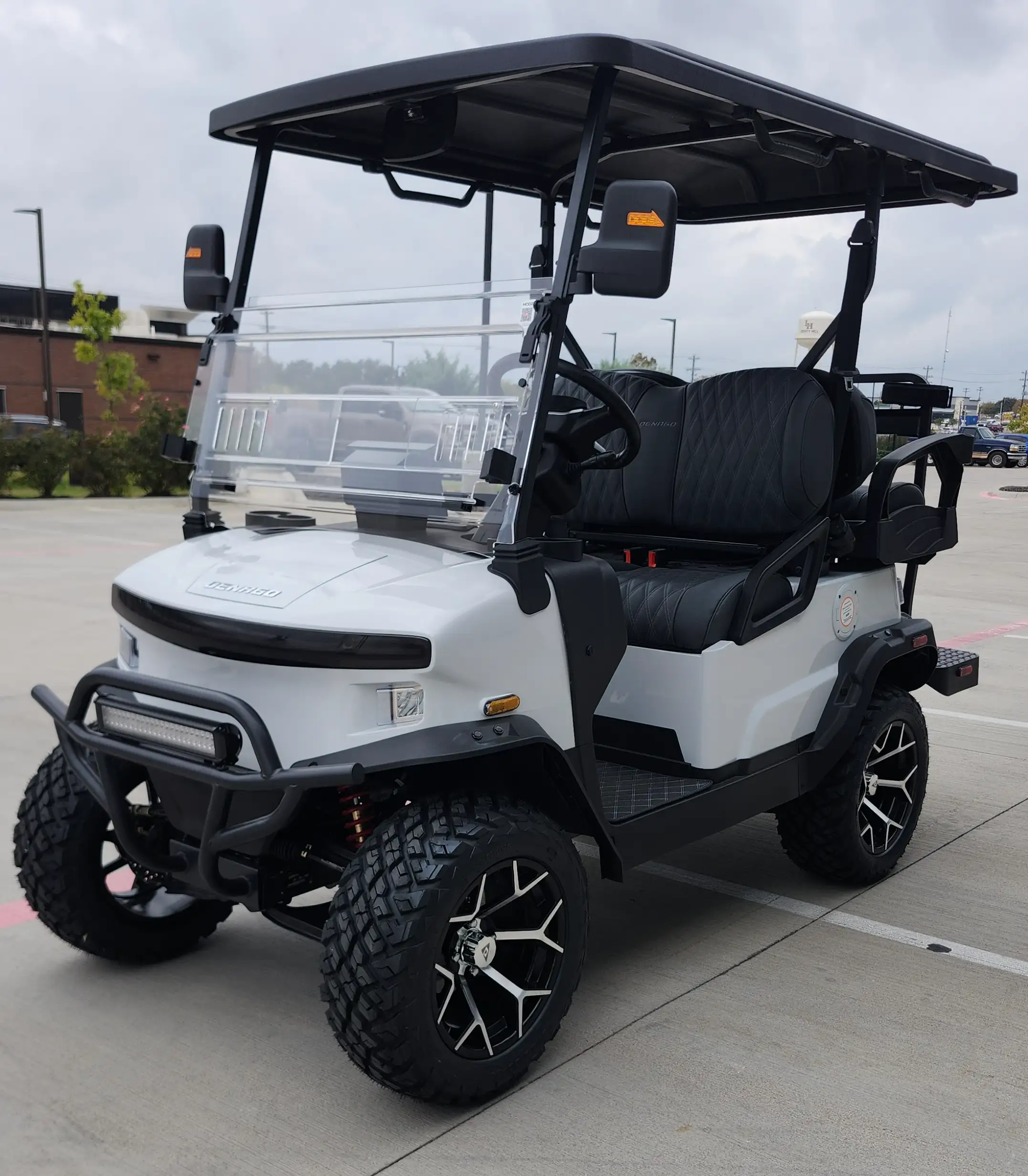 The 2026 Denago EV Nomad XL is a versatile golf cart with a powerful 5 kW motor and a robust lithium battery offering up to 40 miles of city range. It combines advanced tech features with comfort, making it perfect for both leisurely drives and practical transport duties. The Nomad XL’s all-terrain capabilities and stylish design make it a top choice for those seeking efficiency and style.