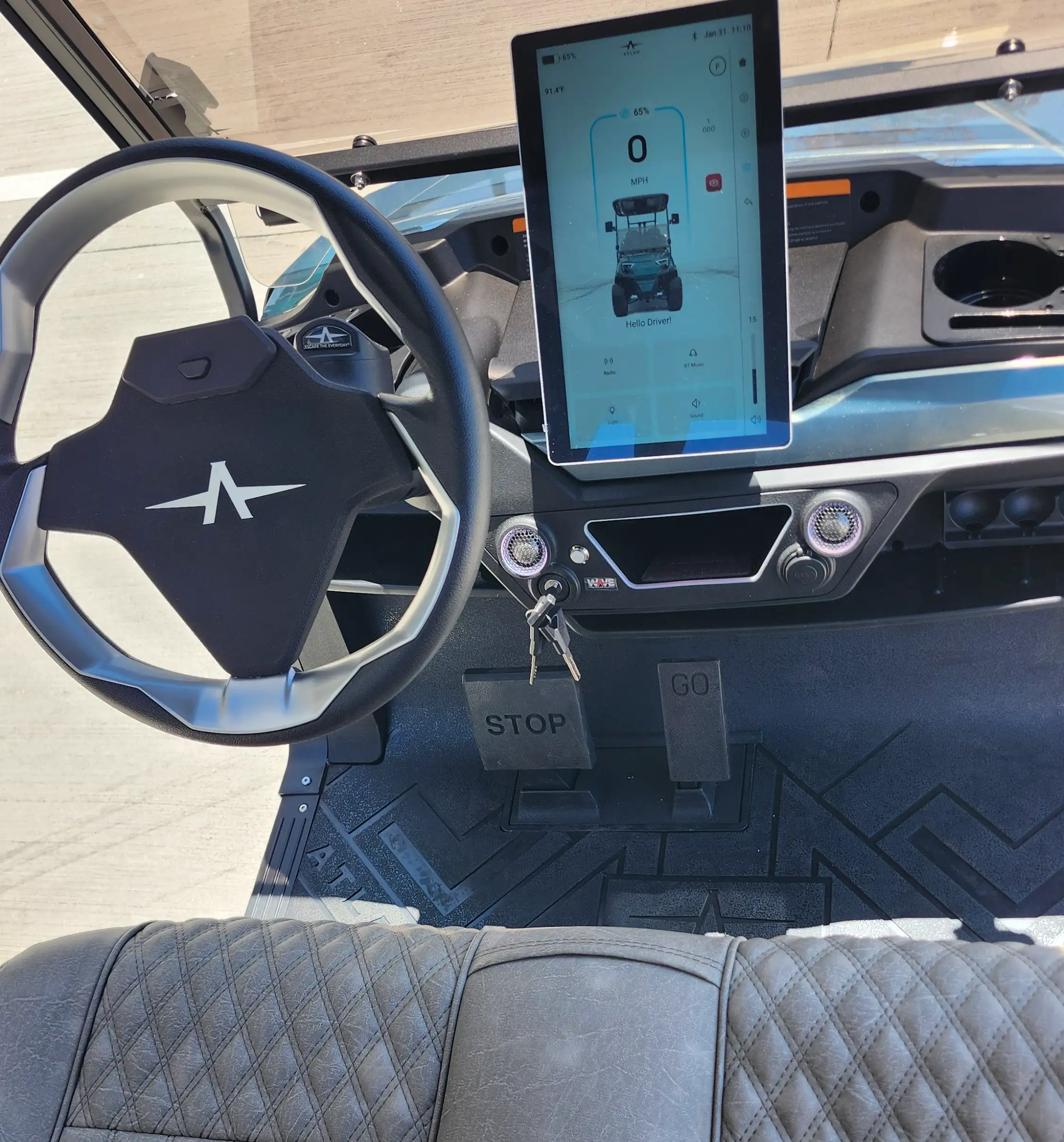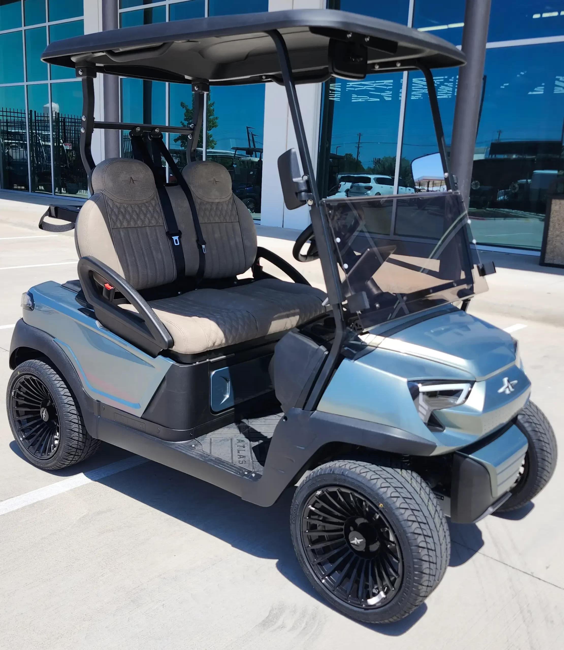 The Atlas 2P combines a robust electric motor with a cutting-edge lithium-ion battery for an impressive range of up to 90 miles. Ideal for city driving, this cart features premium safety and comfort components.