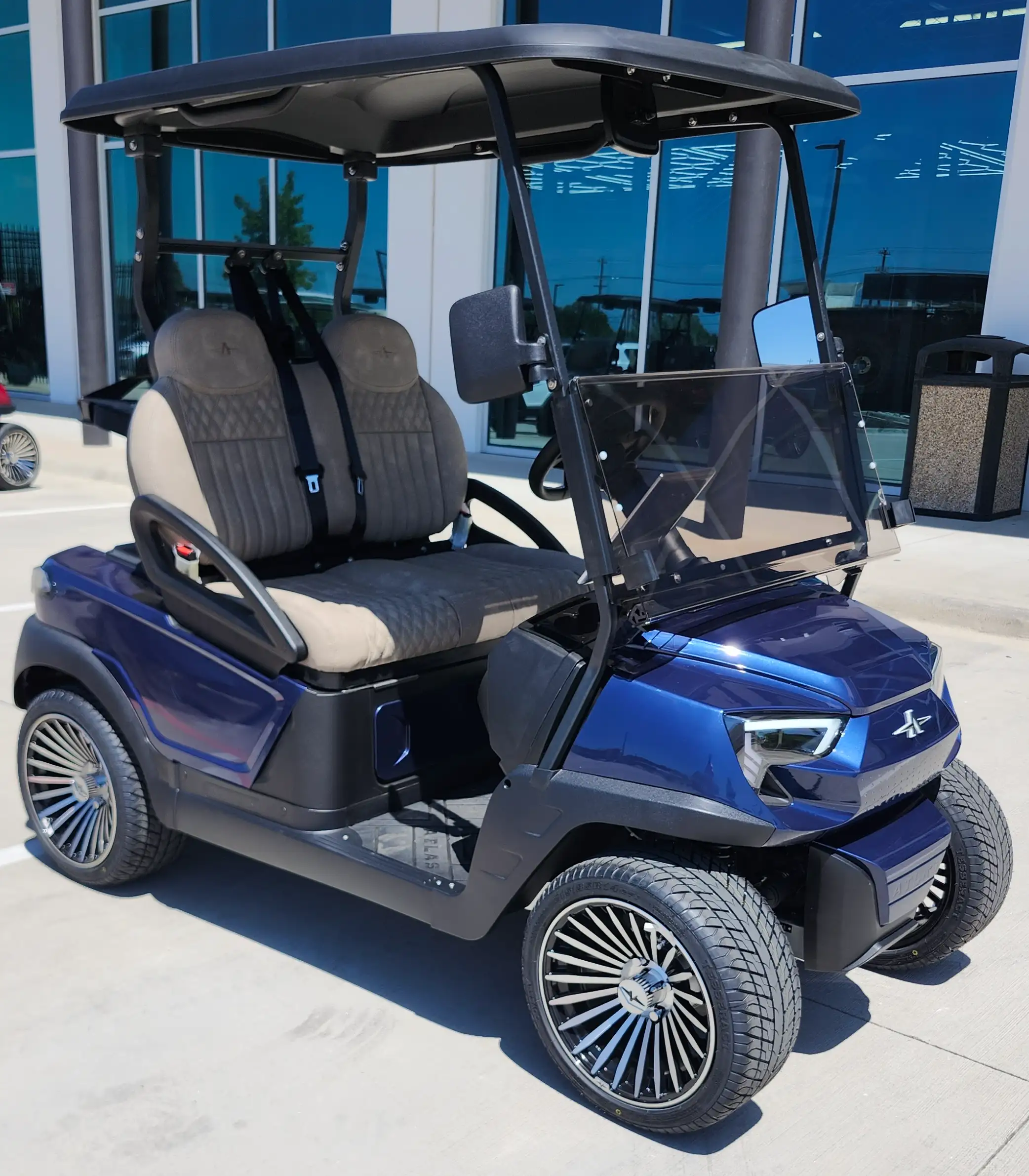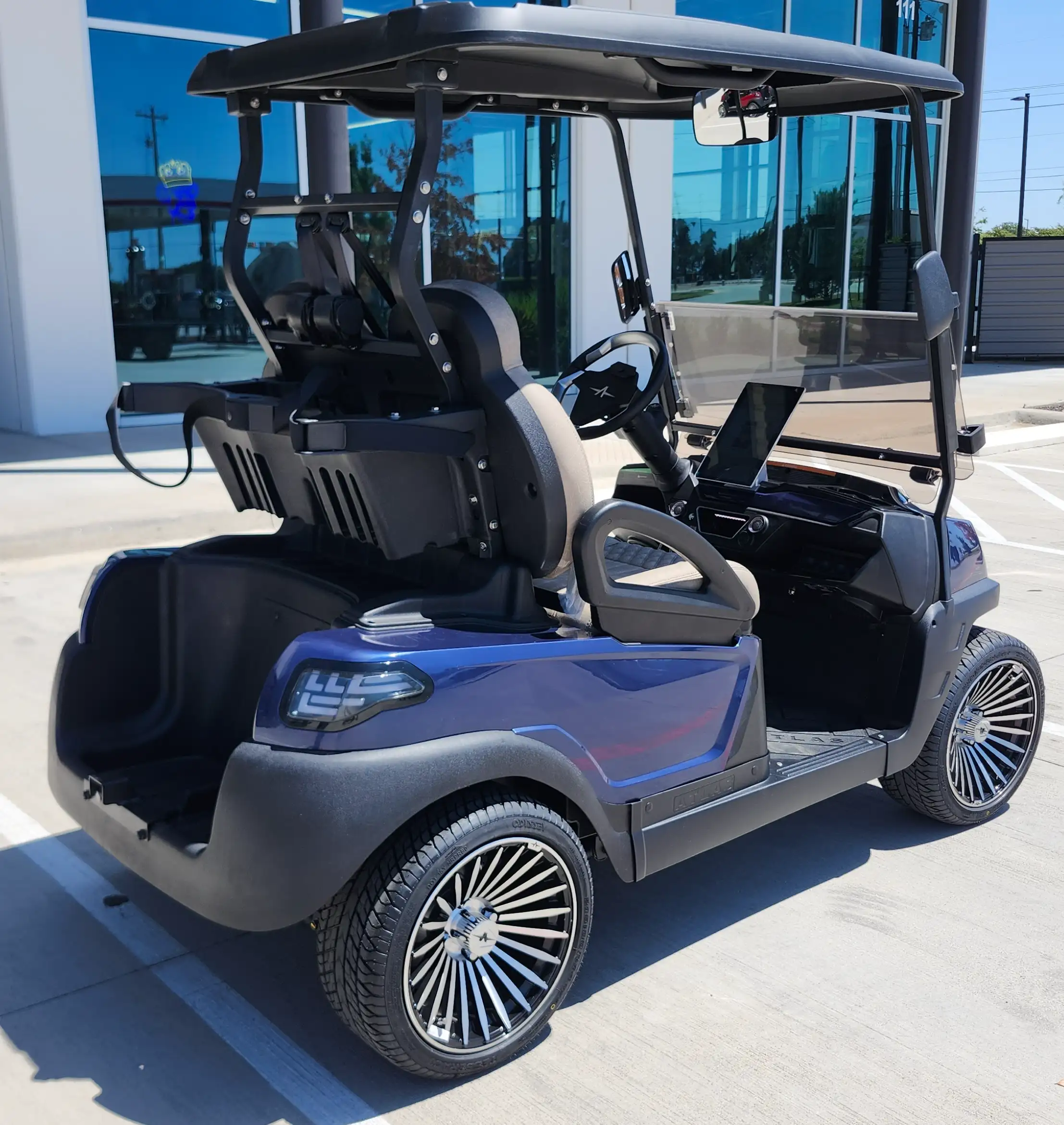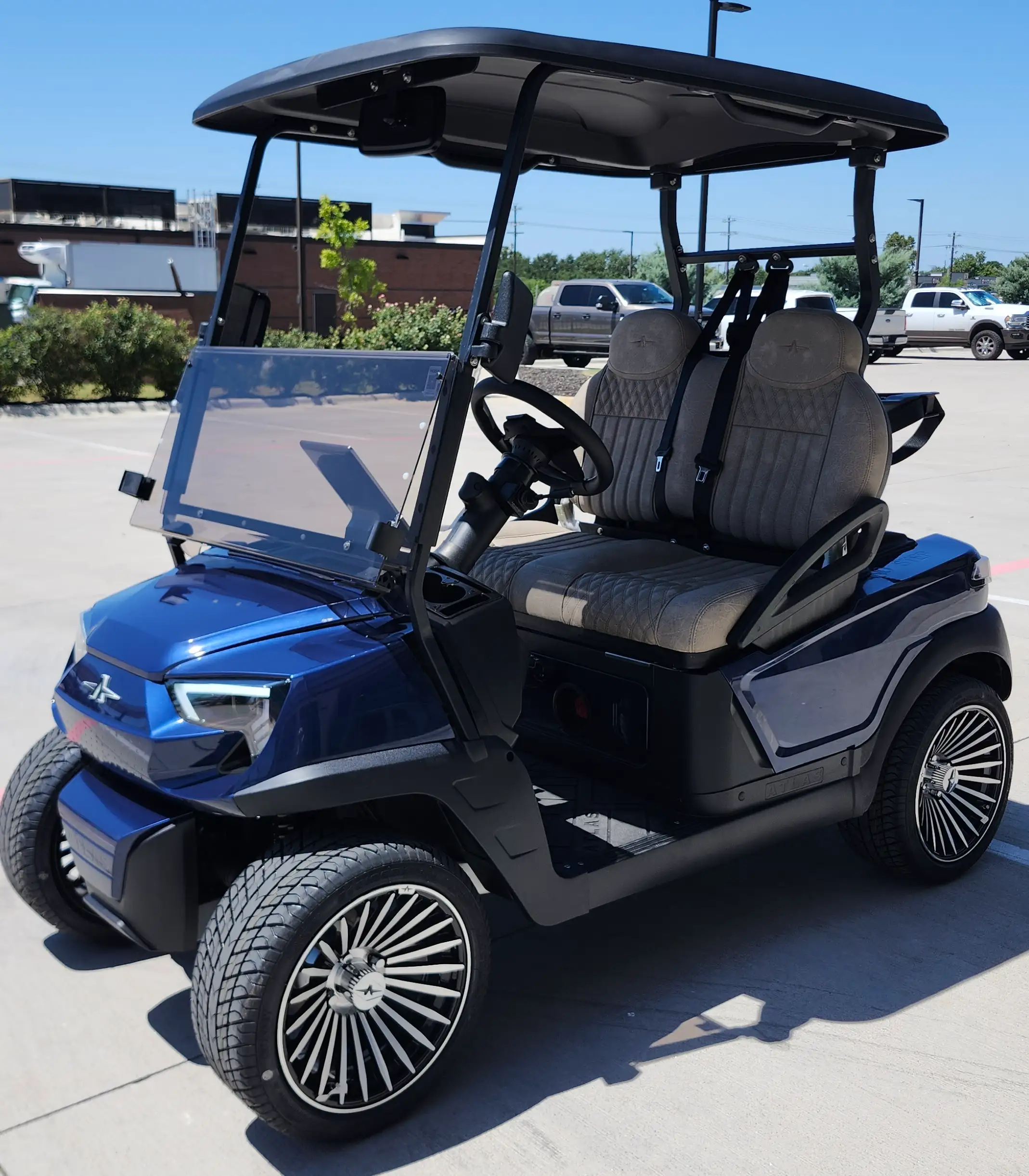 The Atlas 2P combines a robust electric motor with a cutting-edge lithium-ion battery for an impressive range of up to 90 miles. Ideal for city driving, this cart features premium safety and comfort components.